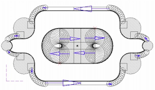 - Mũi tên màu xanh sẽ xác định hướng của vị trí đột trong quá trình cắt. Ở đây không tối ưu ở chỗ hướng cắt sẽ thay đổi.